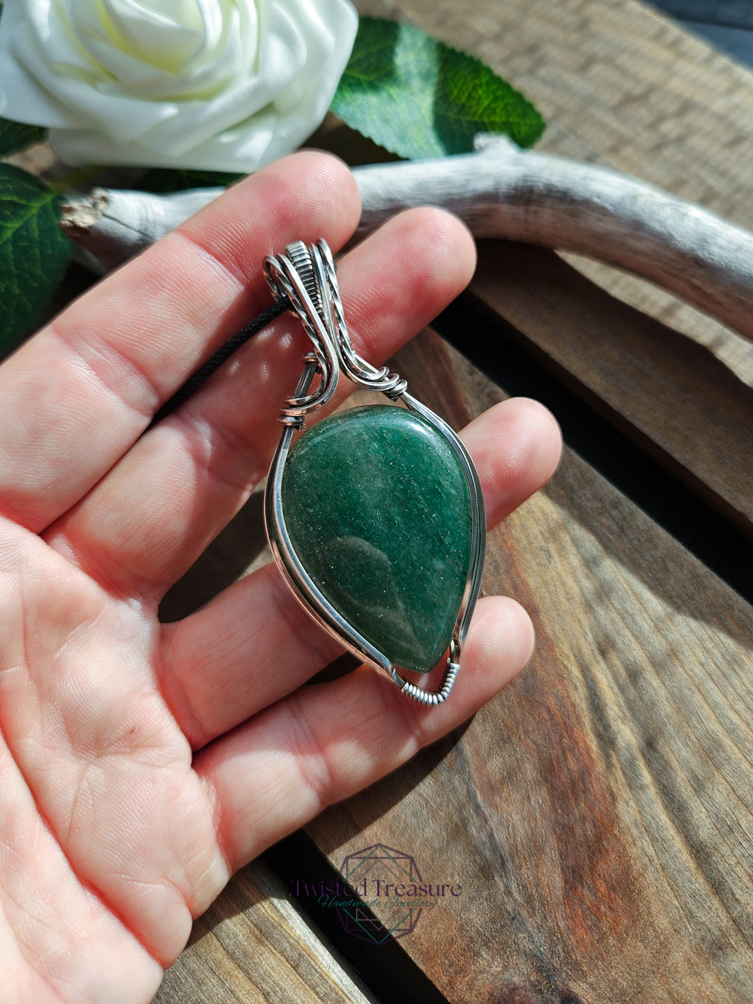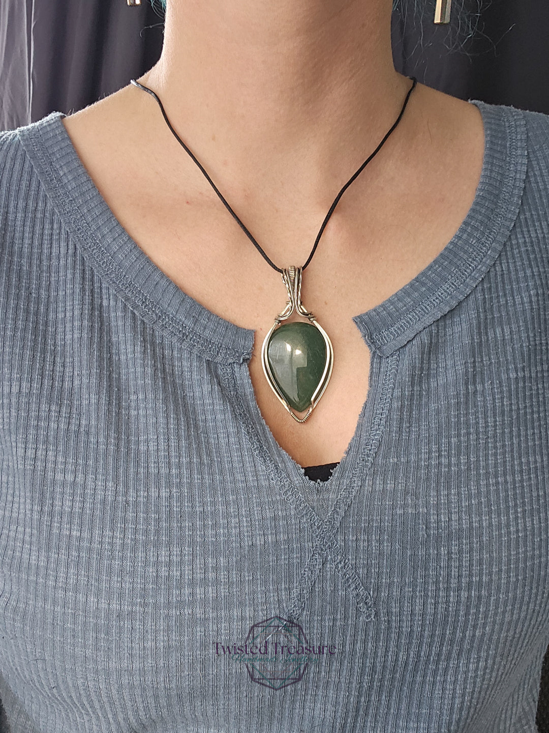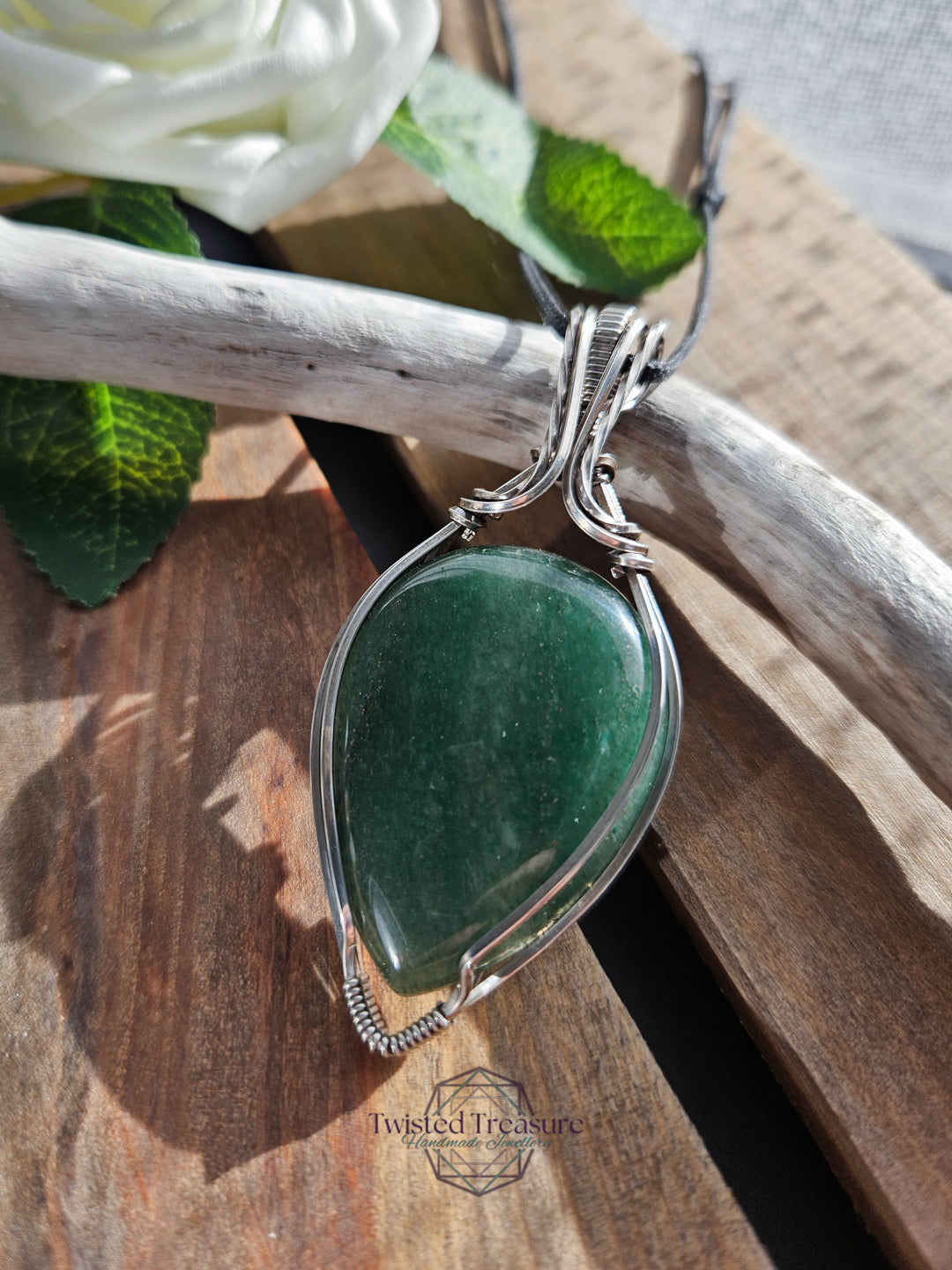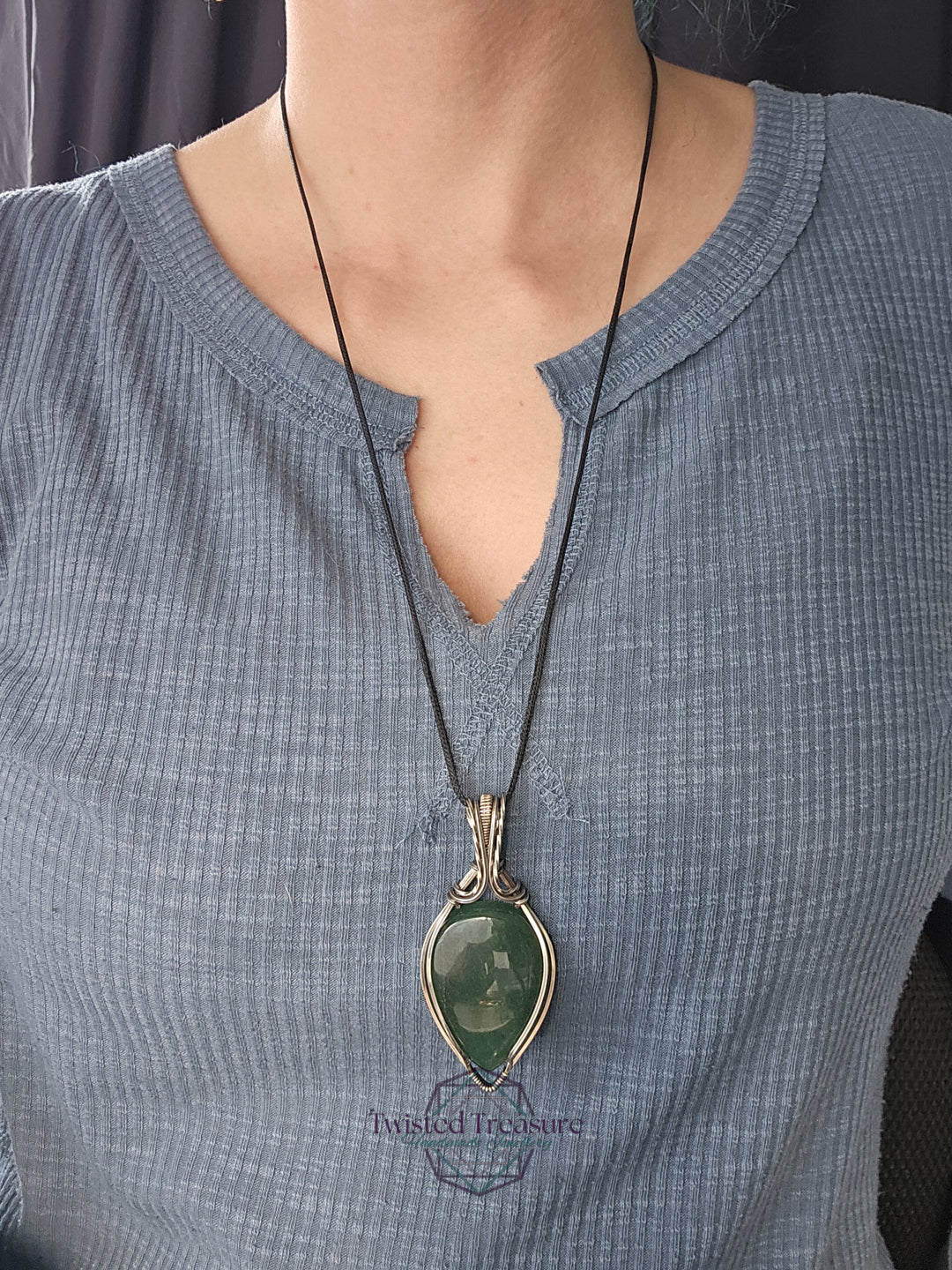 Green Aventurine and oxidized Sterling Silver Necklace.