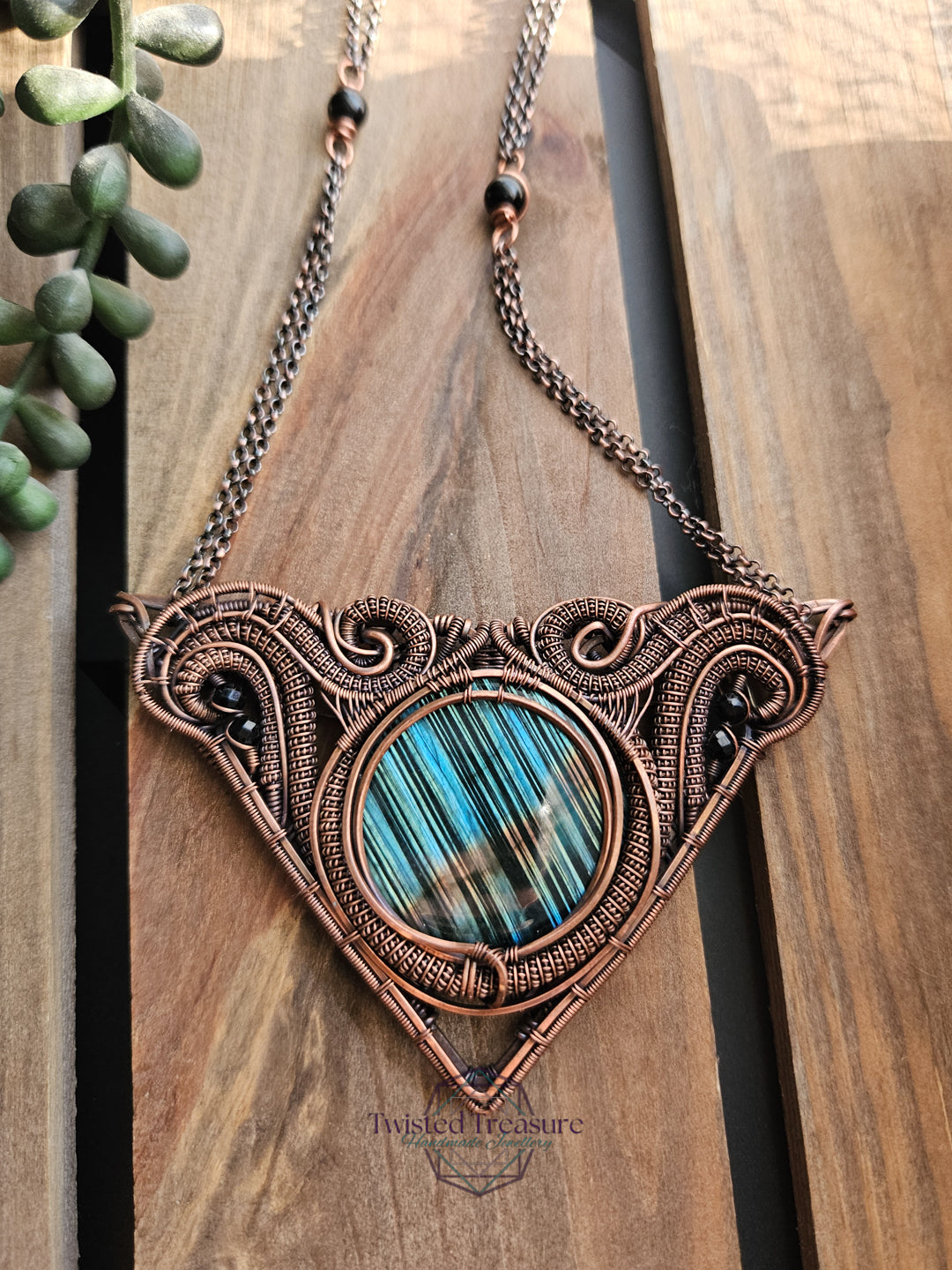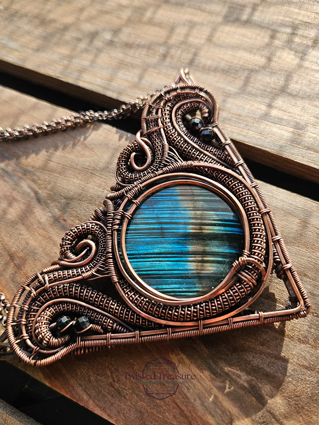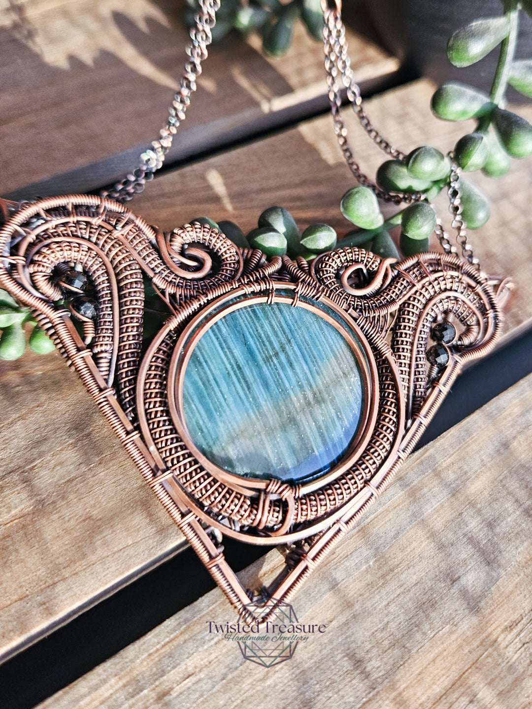 'Tide' - Luminescence lapping at the shore as the tide comes in. Labradorite and Copper Necklace with Black Tourmaline accents.