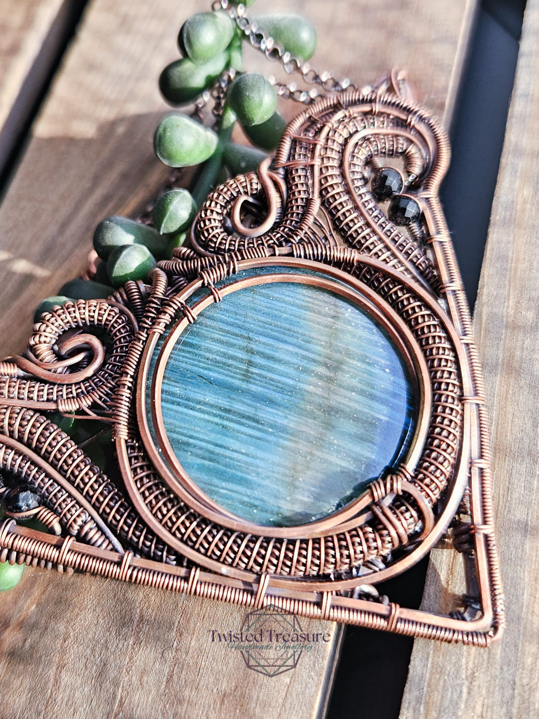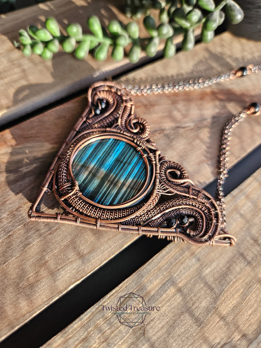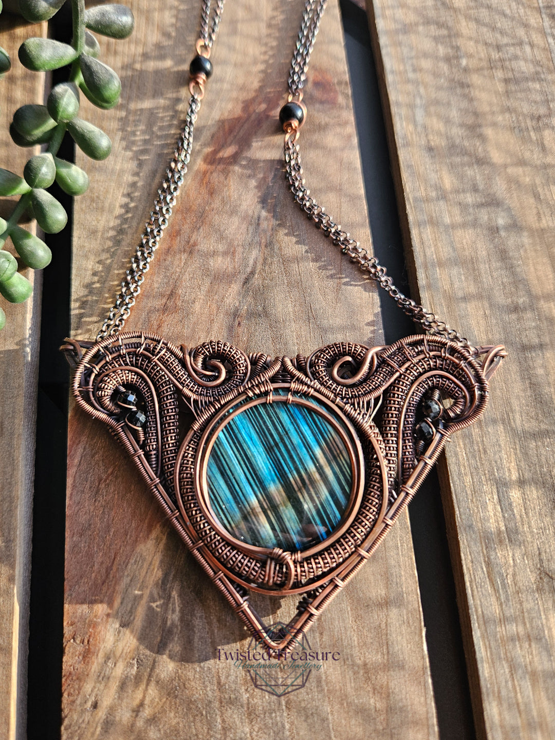 'Tide' - Luminescence lapping at the shore as the tide comes in. Labradorite and Copper Necklace with Black Tourmaline accents.
