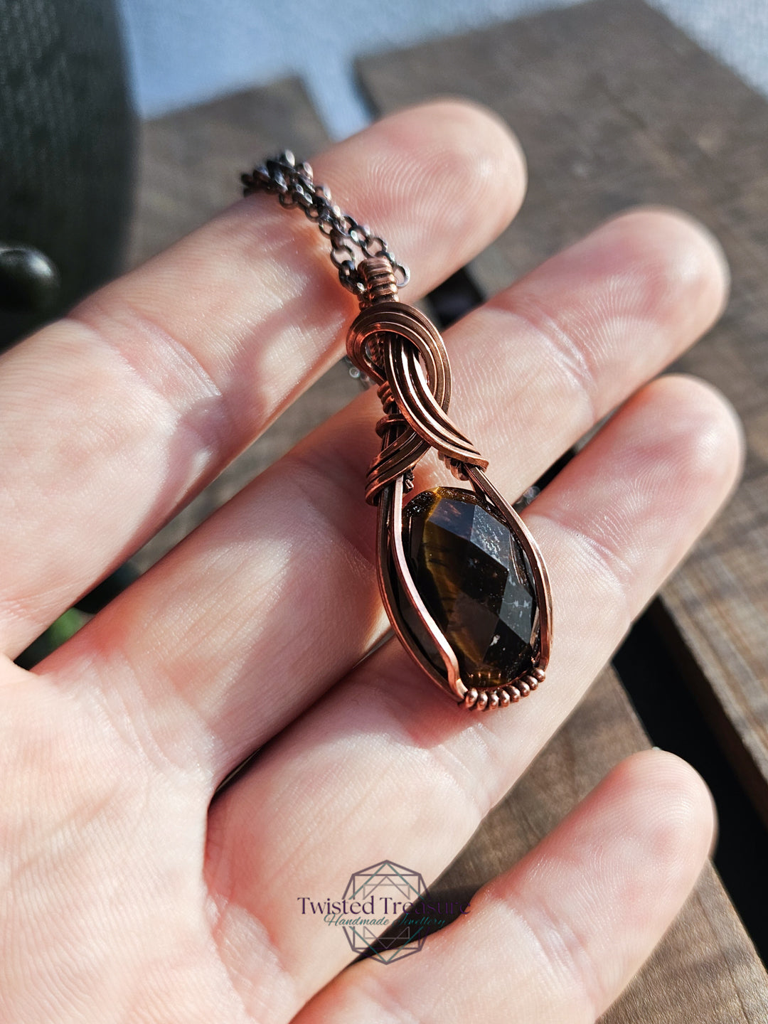 It comes with an 18" copper-coloured chain, polishing cloth, and jewellery bag.